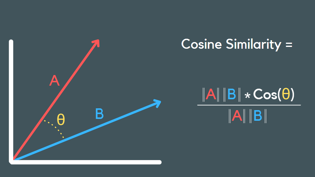 Cosine similarity measures the similarity between two vectors of an inner product space. It is measured by the cosine of the angle between two vectors and determines whether two vectors are pointing in roughly the same direction. It is often used to measure document similarity in text analysis. —[4]