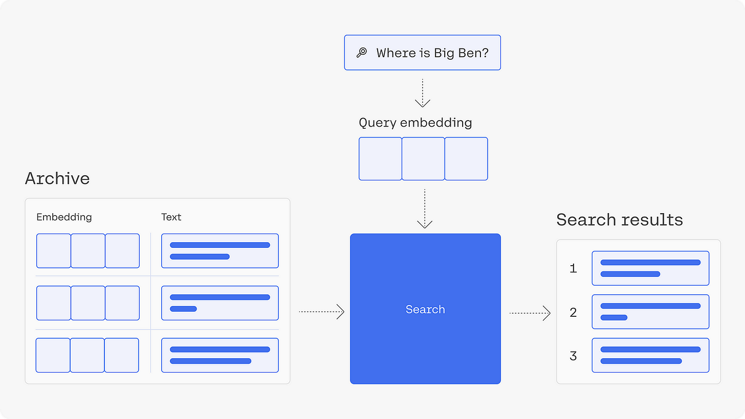 OpenAI’s embedding API provides a straightforward way to turn text into meaningful vectors.